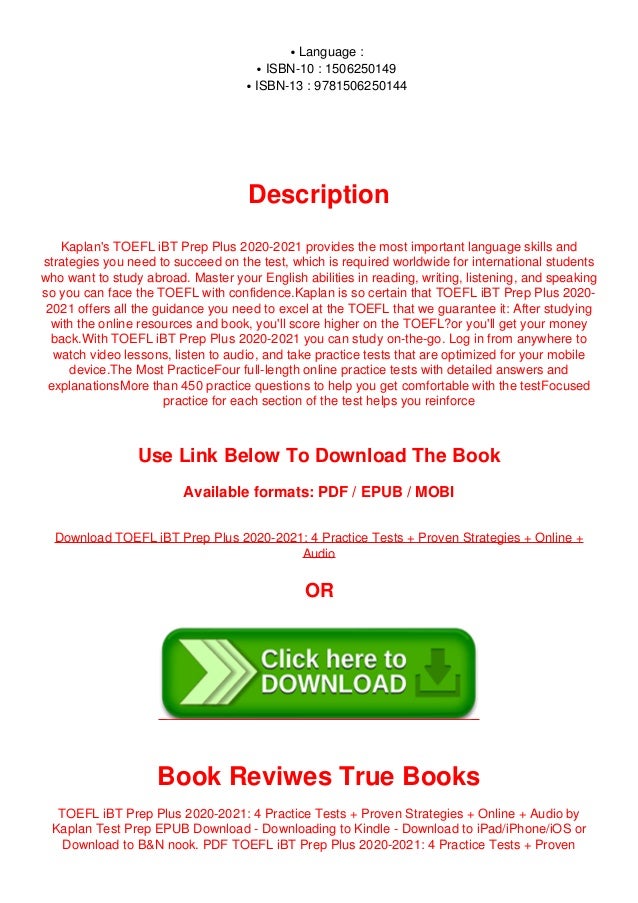 This book from ets contains five retired toefl test forms with authentic reading, listening, speaking, and writing questions, plus an answer key for each form.