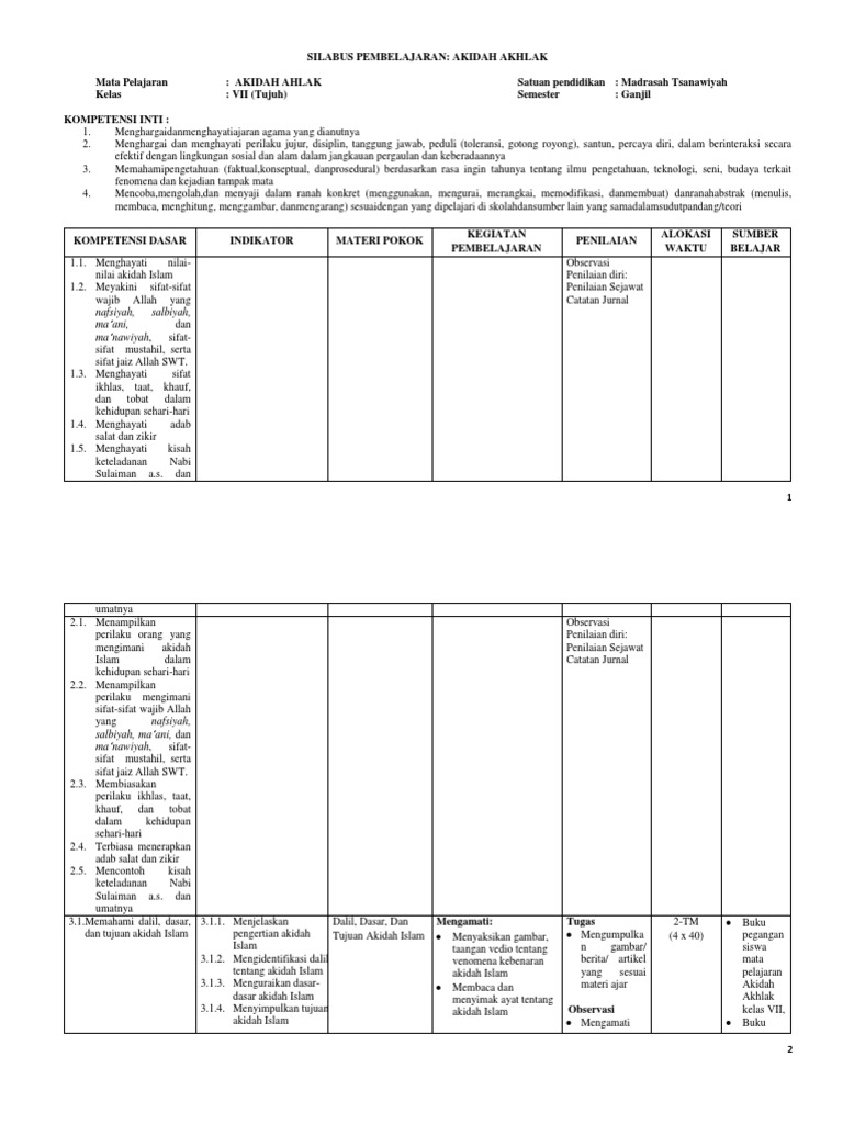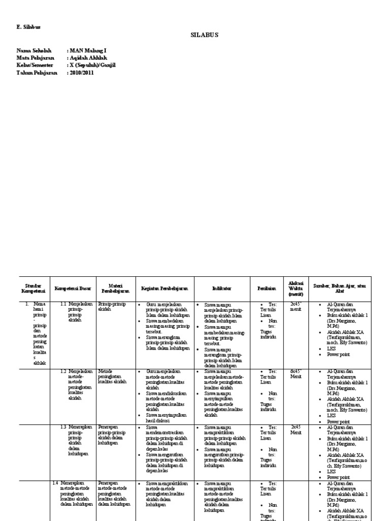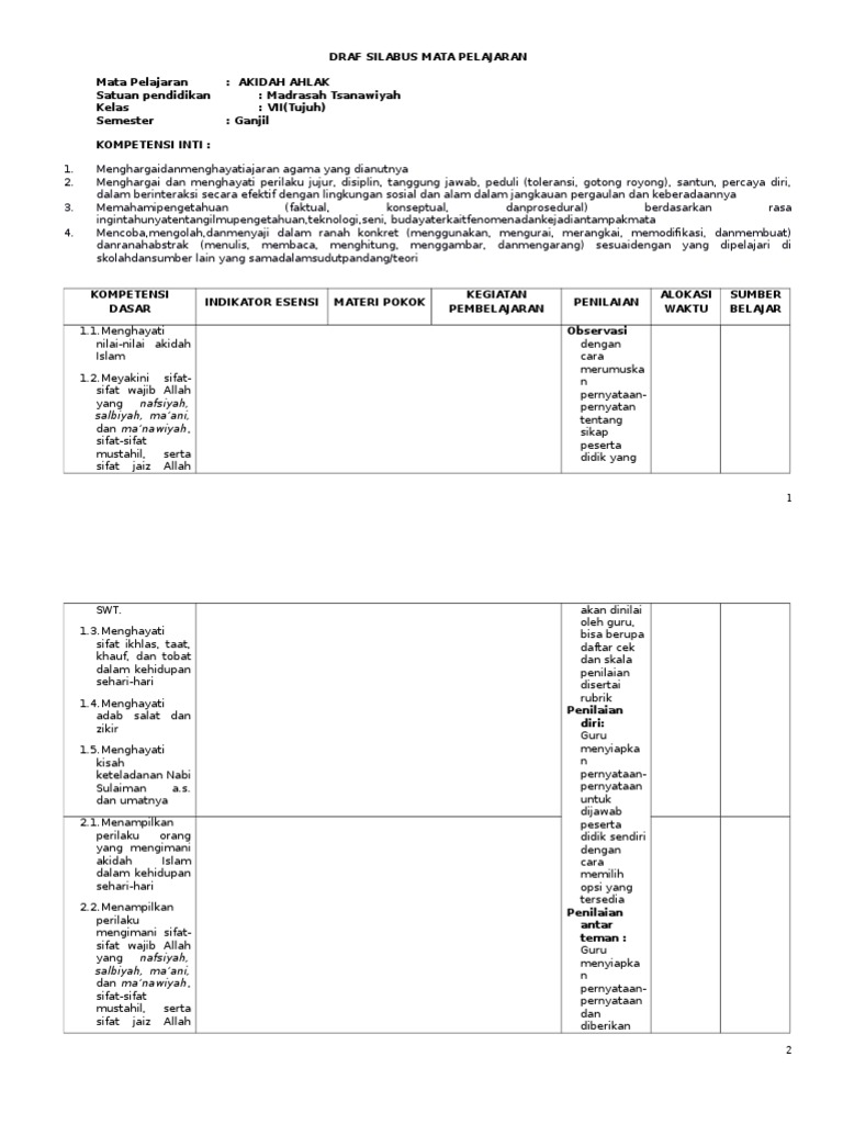 Contoh silabus akidah akhlak sd/mi kelas 4 semester 1 dan 2 kurikulum 2013 tahun 2020. Silabus aqidah akhlak mi kelas 1 semester 1 k13. Aqidah akhlak tema / subtema : Silabus akidah akhlak mts kurikulum 2013 edisi revisi terbaru tahun 2018 ini merupakan perangkat terbaru yang akan saya bagikan pada kese. Akhlak ma, kemenag ri, 2014.